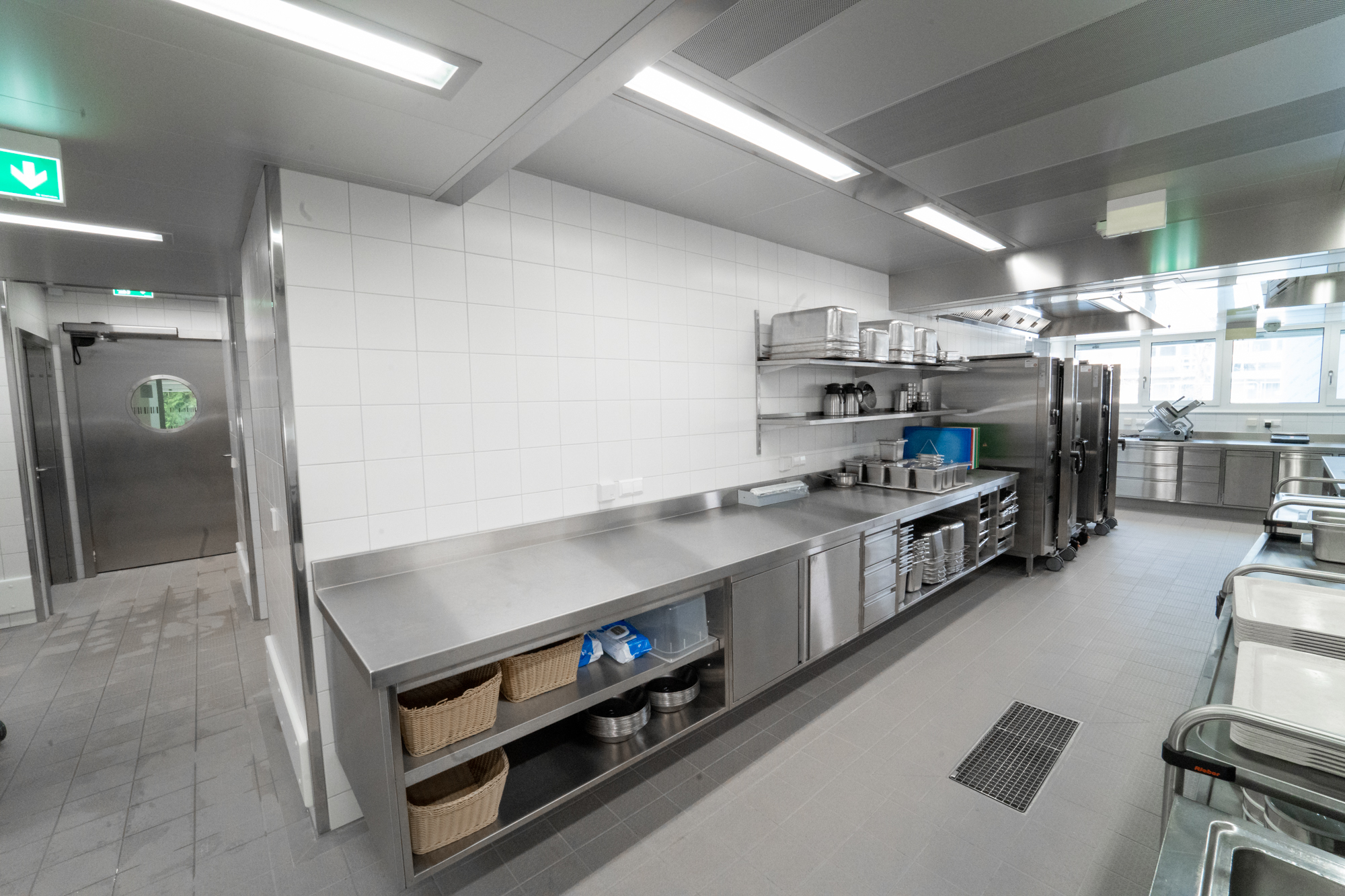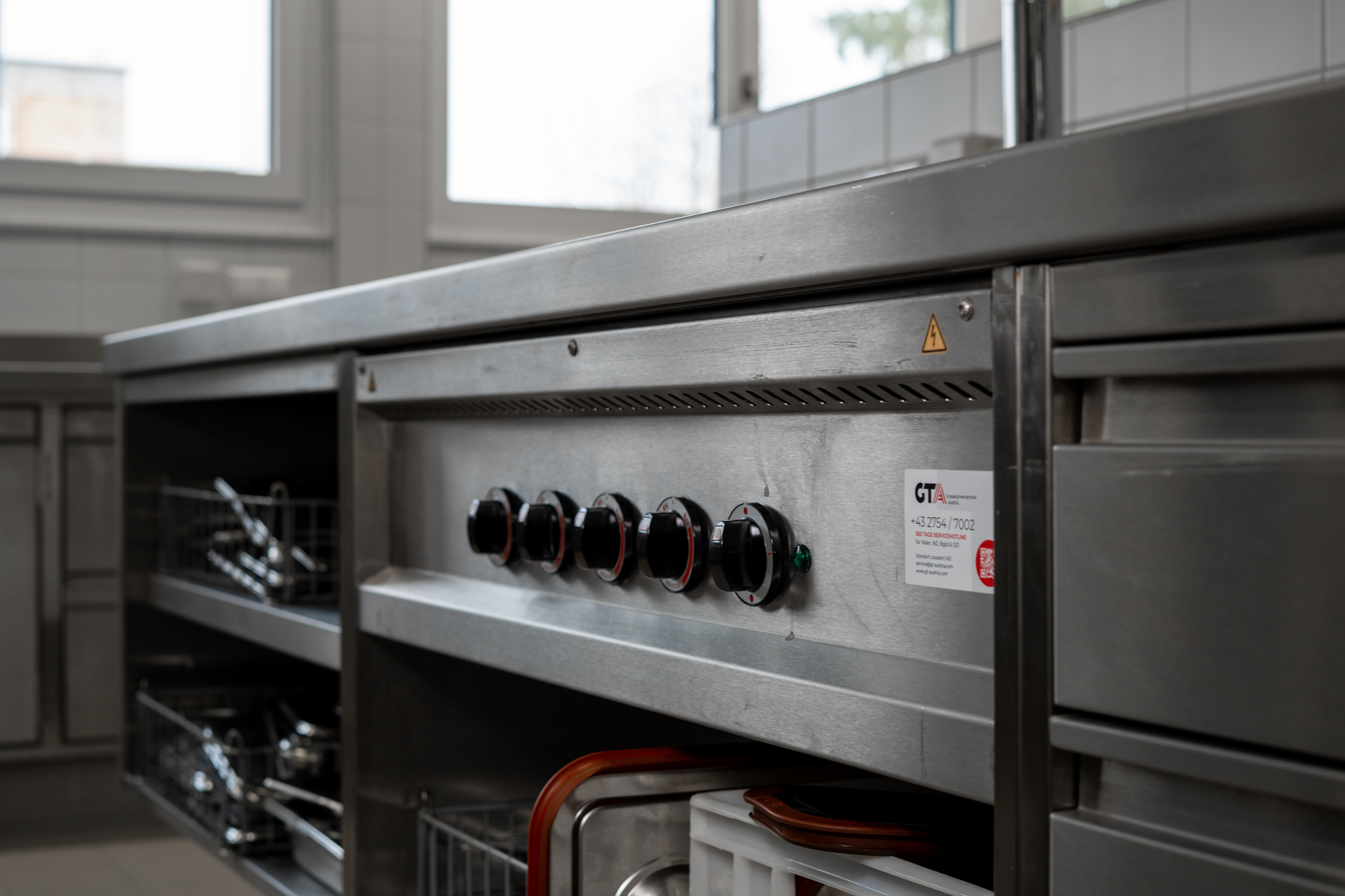 Nach der kompletten Demontage der alten und ausgedienten Kücheneinrichtung wurden die baulichen Massnahmen rasch umgesetzt, sodass die neue Einrichtung bis Ende des Jahres 2021 betriebsbereit installiert werden konnte. Es wurde auf Qualität und moderne Technik nahmhafter Hersteller gesetzt. Die Edelstahlmöbel wurden von unserer eigenen Produktion in Hygienebauweise sowohl in Hänge- als auch Sockelausführung produziert.