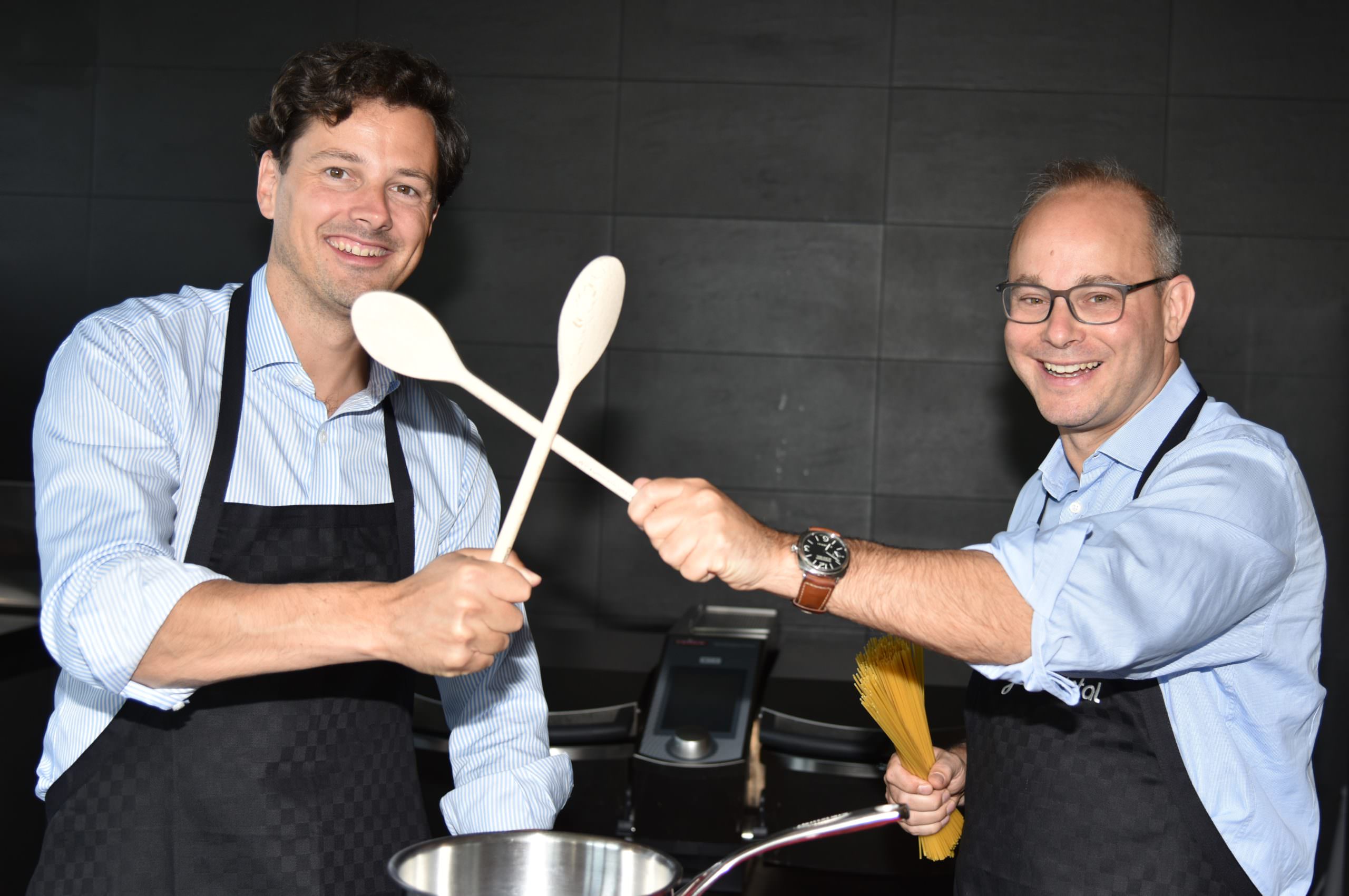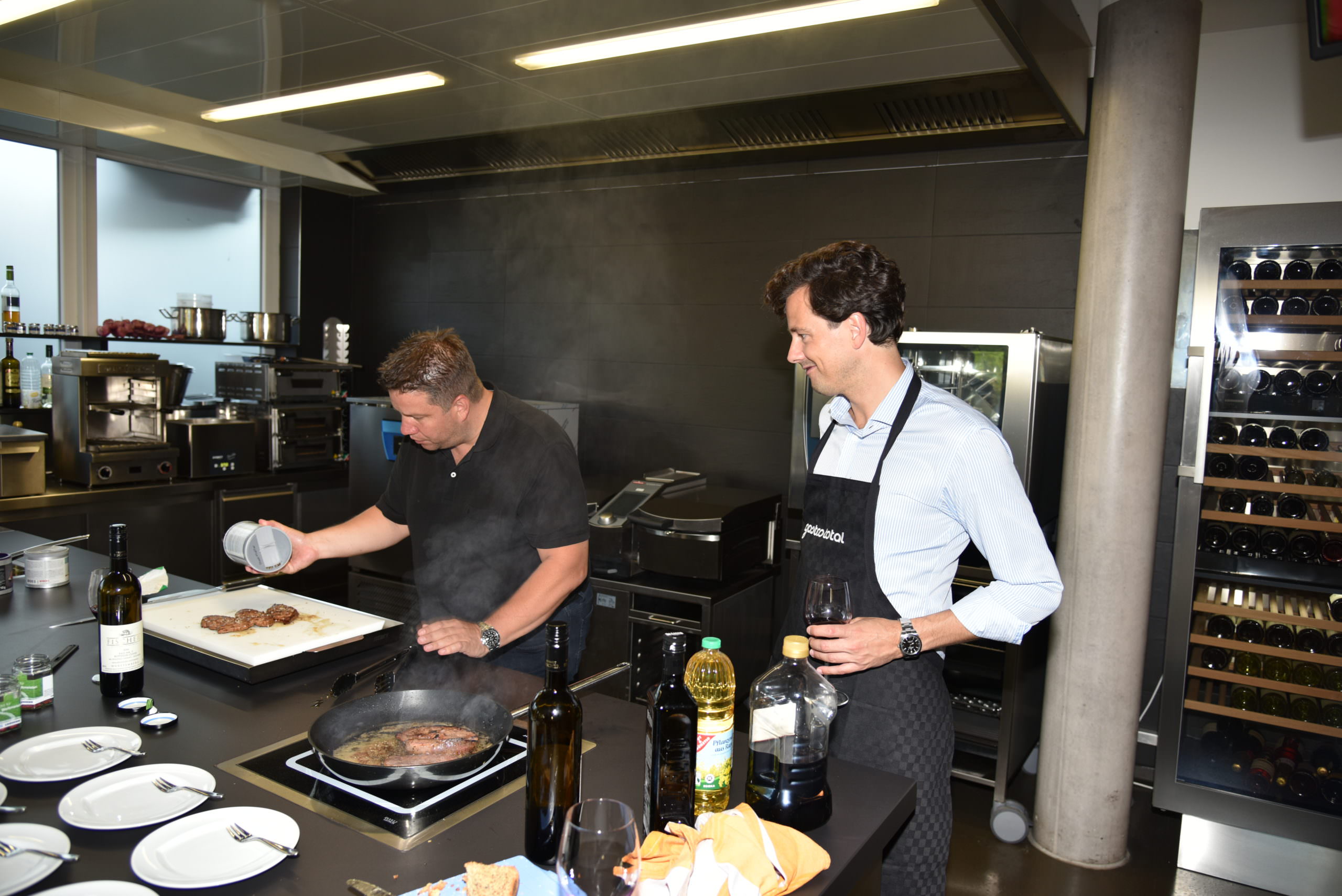 Zusammen mit Thomas Förch, Geschäftsführer der Gebrüder Holzwarth GmbH, der selbst ein leidenschaftlicher Hobbykoch ist, wurde bis spät in die Nacht die neue Vertriebsstrategie der gastro total GmbH diskutiert. Und sollten sich beide Geschäftsführer einmal nicht einig sein, so trägt man dies im Kochlöffelduell aus.
